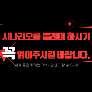 (서로 즐겁게 TRPG~~~) 안녕하세요! 아루카라고 합니다. 현재 시나리오 배포 이후 시나리오 스포일러건이 들어와 어느정도의 가이드 라인을 만들기 위해 공지를 씁니다. 제 시나리오는 >>>개요 이후 부분은 무조건 스포일러 , , , , , 11개 중 하나라도 스포일러가 3번이상 발견 될 경우 >> 일주일간 시나리오 배포 중지 및 세션 불가능